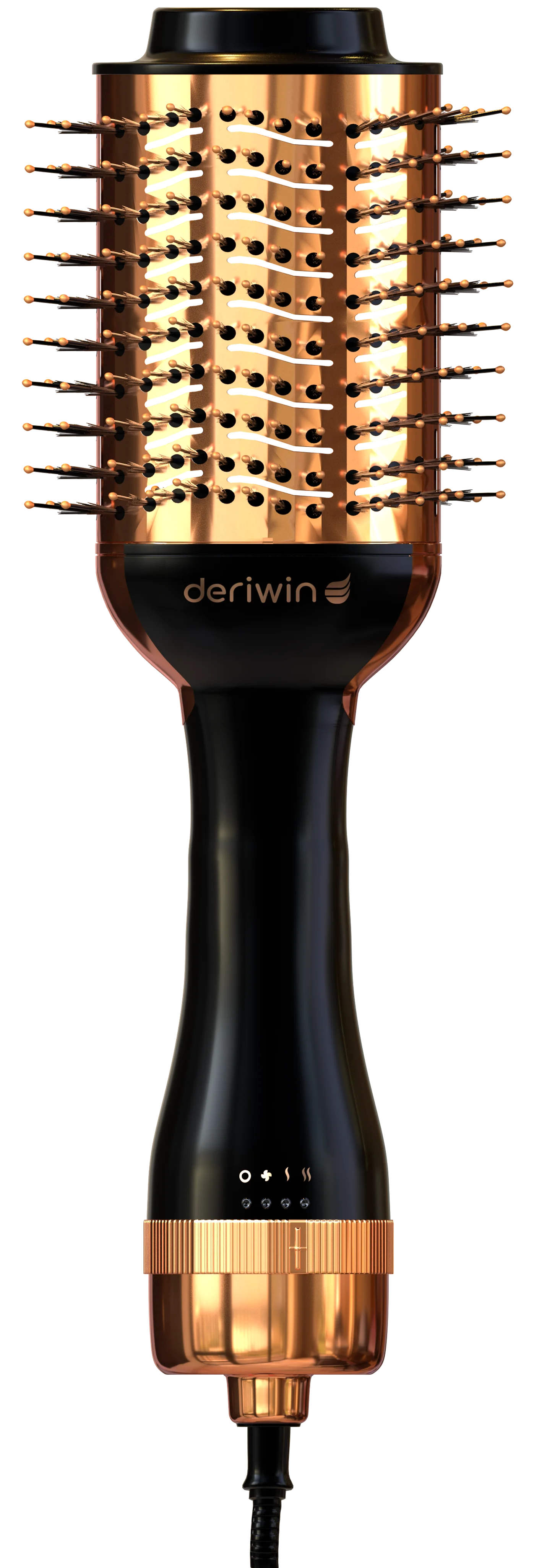 لان فرشاة ديروين للتجفيف والتكثيف 1X4 تعمل بتقنية الأيونات ومطلية بطبقة خارجية من السيراميك الذي يوزع الحرارة بالتساوي على الشعر ليحميه من أي ضرر فهي تمنحك: